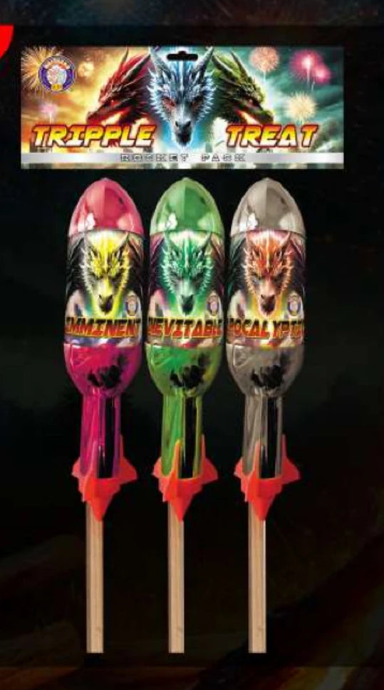 3 huge finale rockets. Show stoppers and each with their own unique effects. Wow is the word you will be hearing allot when these set off